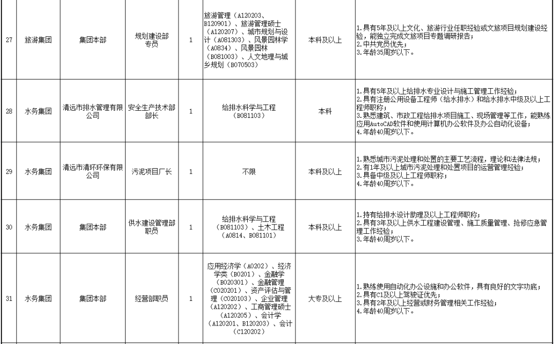 為進一步加強清遠市屬國有企業(yè)人才隊伍建設(shè),根據(jù)企業(yè)經(jīng)營發(fā)展需要,按照“公開、平等、競爭、擇優(yōu)”的原則,公開招聘市屬國有企業(yè)員工38人,誠意邀請符合條件的人員報名應(yīng)聘。現(xiàn)將有關(guān)事項公告如下: