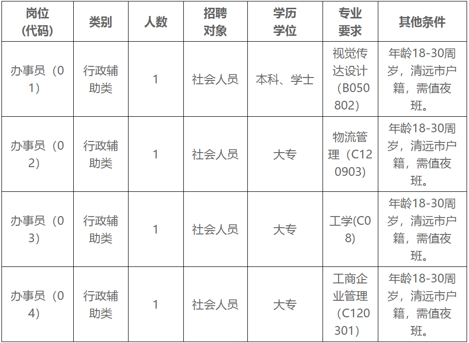 根據(jù)工作需要,清遠(yuǎn)市清城區(qū)源潭鎮(zhèn)人民政府面向社會(huì)公開招聘專項(xiàng)工作聘員4名。現(xiàn)將有關(guān)事項(xiàng)公告如下: