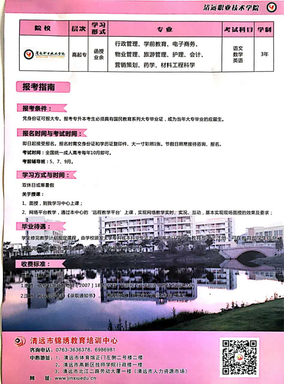 北京大學(xué)、清遠職業(yè)技術(shù)學(xué)院圓夢計劃正式啟動,三年學(xué)費只需5000元,考試前一百名三年學(xué)費只需1000元,心動不如行動,趕快加入圓夢計劃吧!咨詢熱線:0763-3630112 報名地址:清遠市北江二路勞動大廈一樓