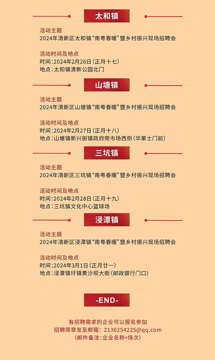 招聘會預(yù)告|2024年清遠(yuǎn)市清新區(qū)“南粵春暖”暨鄉(xiāng)村振興大型招聘會