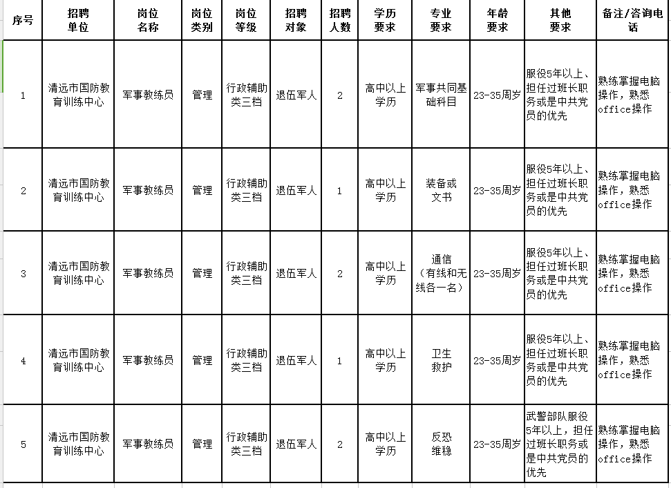 清遠市國防教育訓(xùn)練中心2020年公開招聘工作人員公告